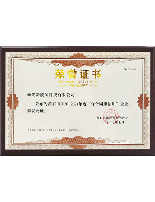10月,恭喜我司榮獲黃石市2020-2021年度"守合同重信用"企業(yè)