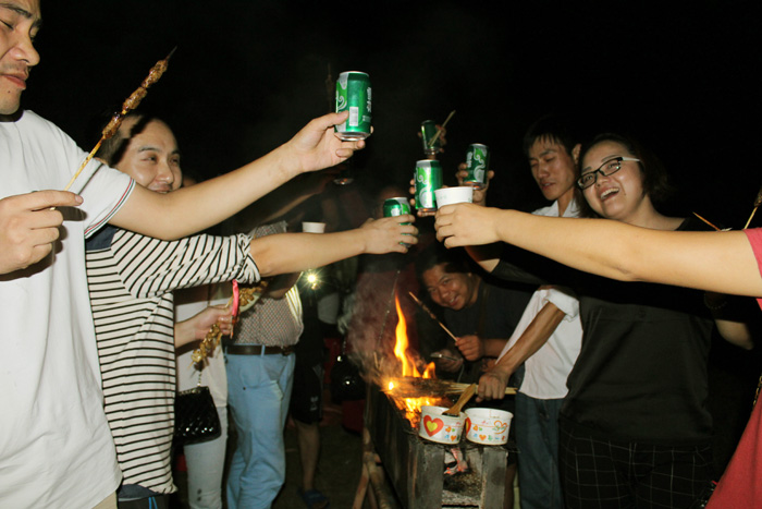 燒烤:一盞燈、一套音響、兩個張大桌、四個爐子、一袋碳、幾筐串串、幾箱酒、幾箱飲料,簡單的裝備卻潛藏著巨大的興奮能量!