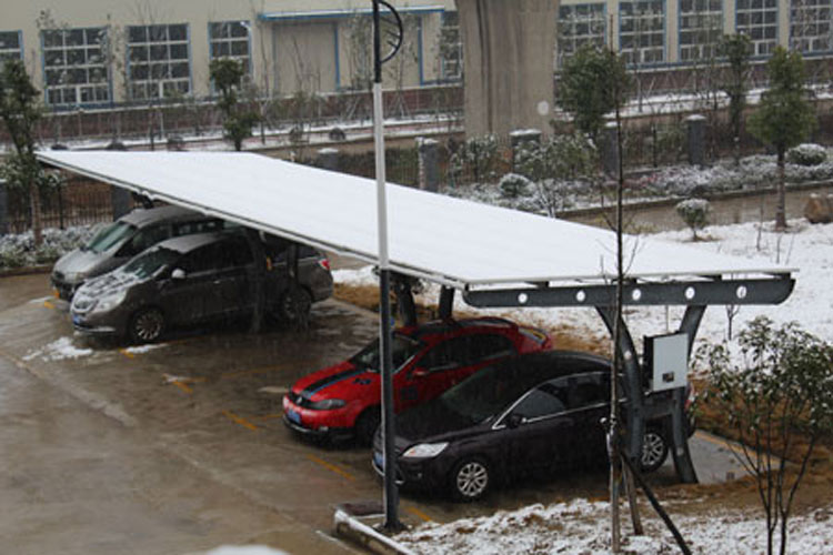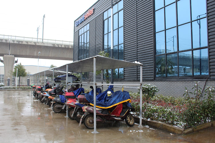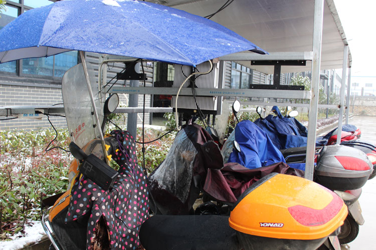 光伏車棚正在正常發(fā)電,電瓶車正在充電