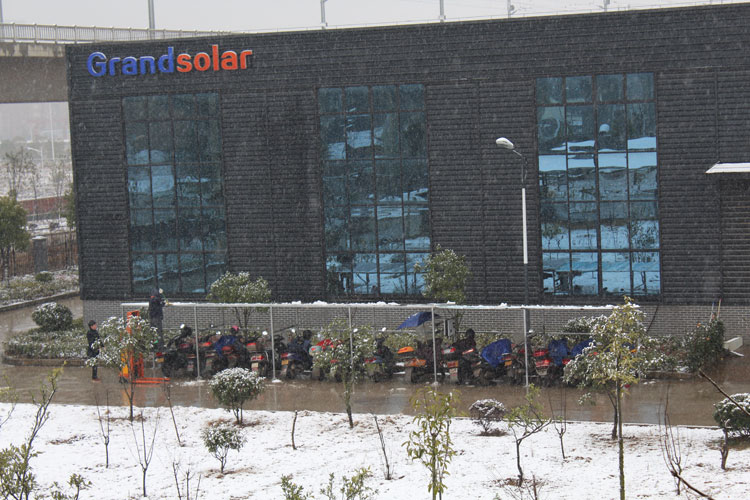 至于大雪天氣,注意及時清理,不要讓積雪在電池板上堆積太厚,以免組件過度結(jié)冰。清理時可以利用柔軟的物品將積雪推下,不要劃傷玻璃,不要踩在組件上清掃。