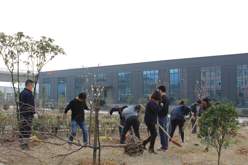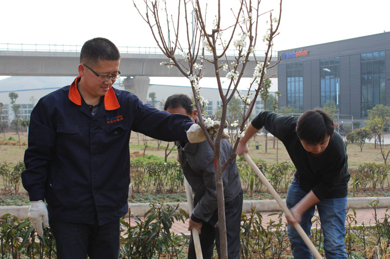 繼《廠區(qū)綠化帶工程》、《廠外公路綠化項(xiàng)目》之后2016年3月12日植樹節(jié),竑光新能源再次啟動(dòng)《廠區(qū)果樹培植綠化項(xiàng)目》。此次項(xiàng)目斥資10萬,種植種類繁多,包括金錢橘、柚子樹、石榴樹、蘋果樹、櫻桃樹、李子樹、桃子樹、藍(lán)莓、葡萄樹等等。