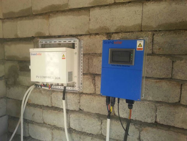 水泵系統(tǒng):60片250W太陽能光伏板+3進1出匯流箱+15KW水泵逆變器+11KW水泵